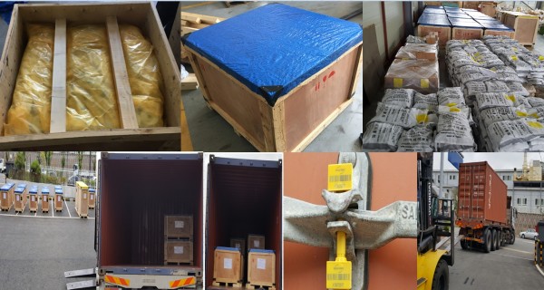 수출용 제품 포장 및 상차 출고 관련 사진입니다.